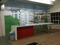 Een muurschildering maken van 6,8 bij 4 meter.
