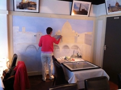 Waar je Da Verdi kunt vinden? Hier is de link. Wel even van tevoren bespreken, de telefoon rinkelt continu om te reserveren, heb ik gemerkt tijdens het schilderen.