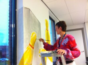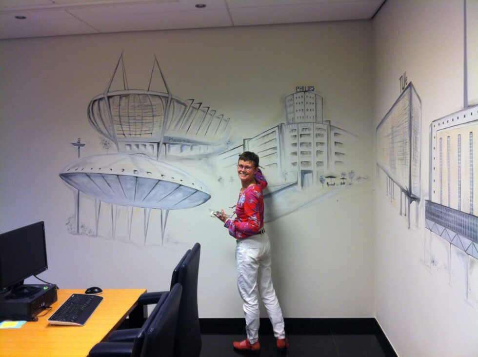 In 2013 had ik daar al een prachtige Muurschildering gemaakt, een Nespresso-wand. En nu voor de directie- en vergaderruimte maar liefst drie grote wanden.