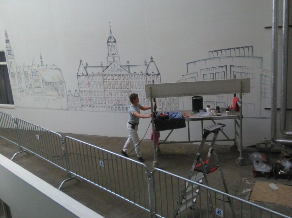 Ik heb er twee enorme muurschilderingen mogen maken, één op de derde etage en één op de eerste etage. Regelmatig stonden de gasten even stil om het werk in uitvoering te bewonderen.