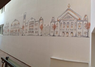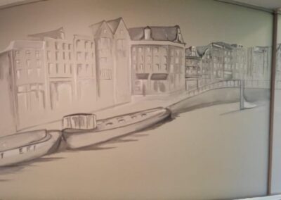 Een muurschildering is een ‘kostuum op maat’. Het kan groot zijn of klein, in een moderne stijl of klassiek. Een muurschildering kan een merk uitbeelden, en natuurlijk kan een muurschildering veelkleurig zijn of stemmig zwart-wit.